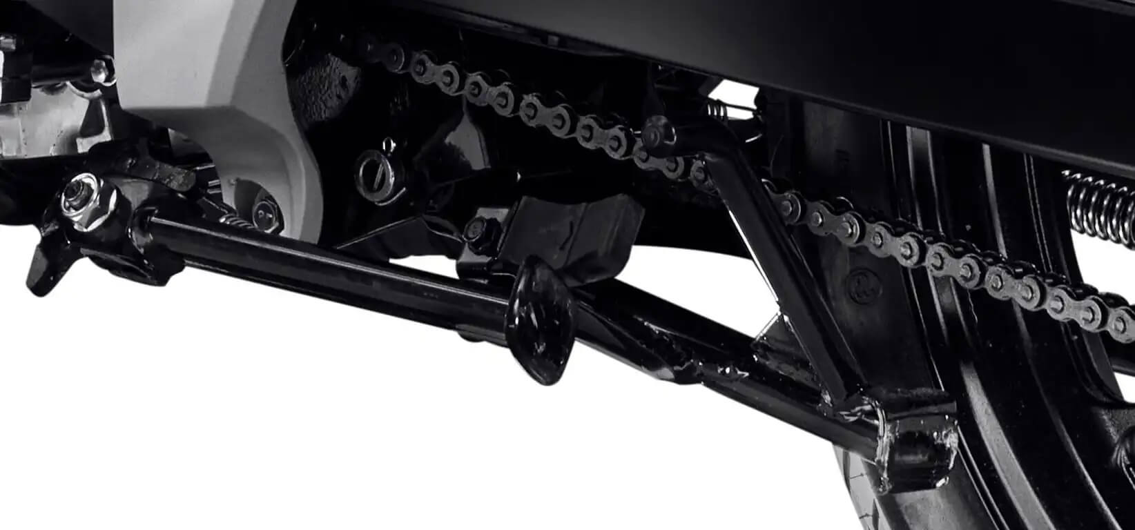 Suspensão Traseira/Curso: Dois amortecedores / 88 / 106 mm